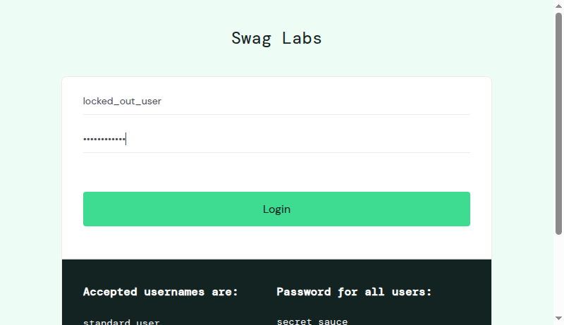 I set the credential of the user "locked_user" on the login page